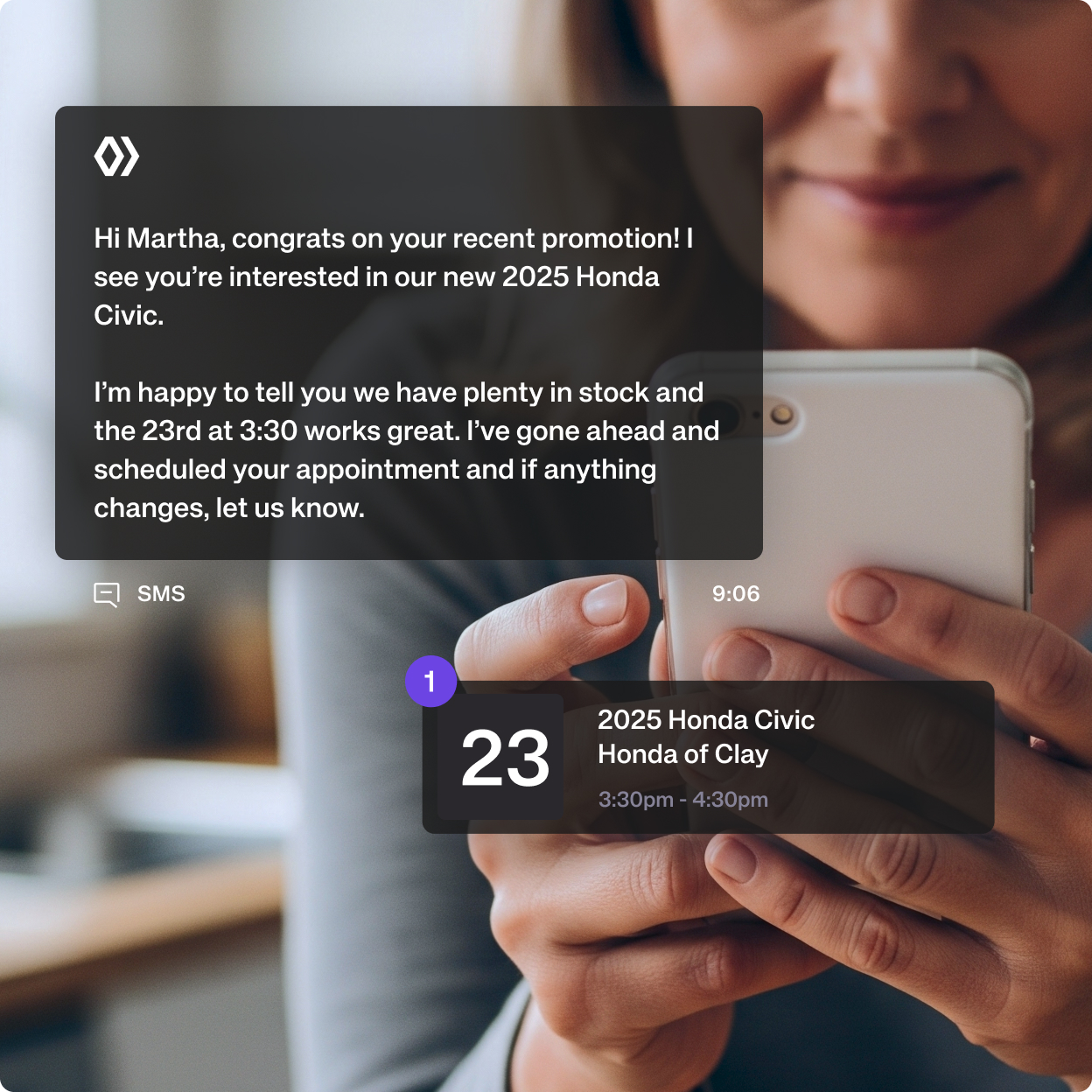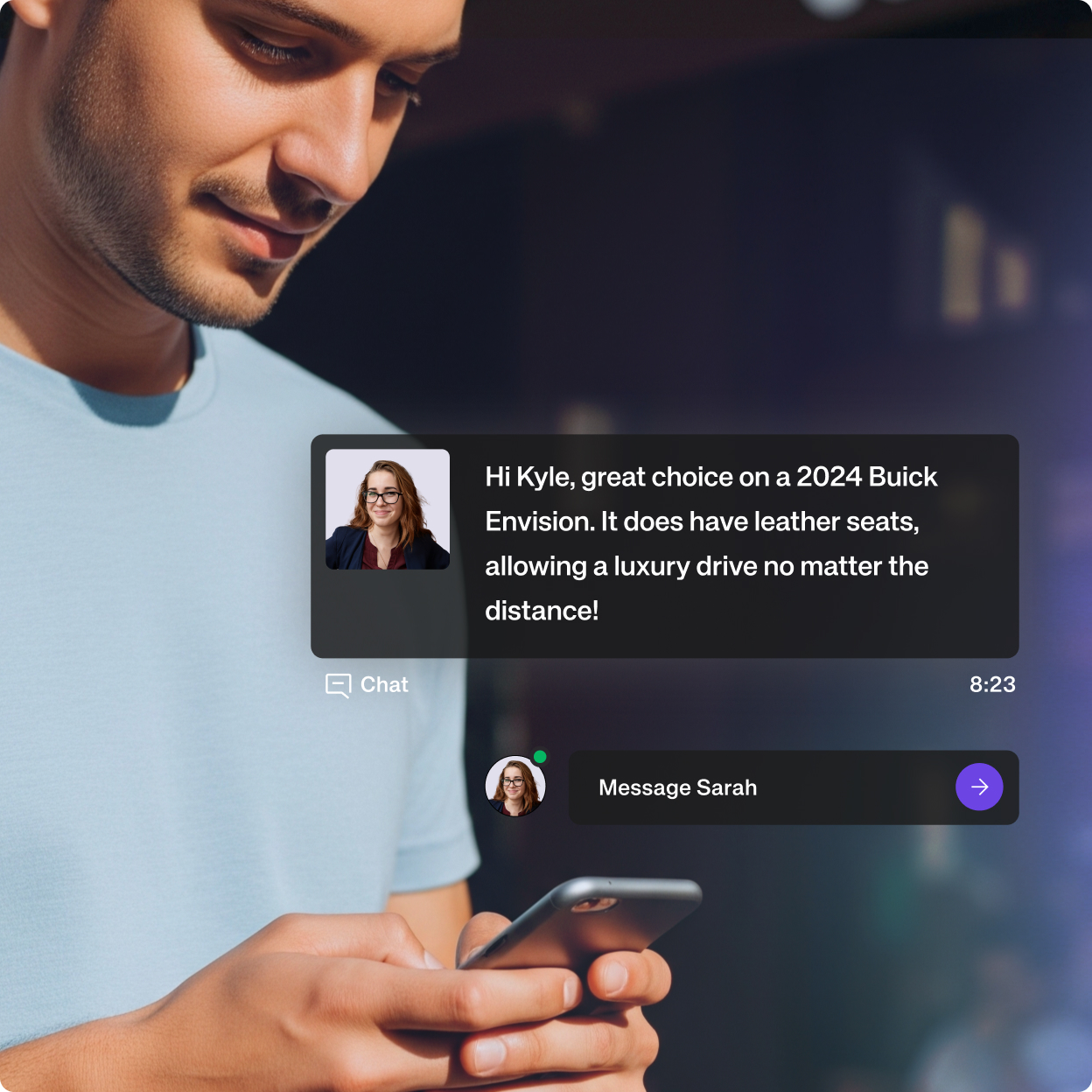 Turn interest into impact. Our AI sales agent makes every lead count—boosting team productivity, booking more showroom appointments, and converting browsers into buyers.
