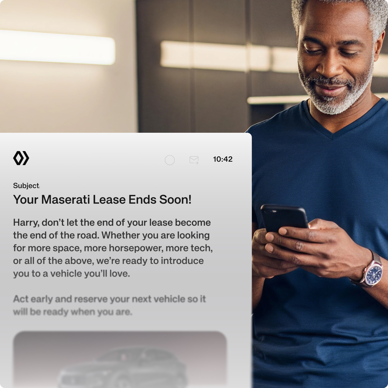 Turn your data into ROI with automated, hyper-personalized outreach that keeps them engaged at every step of the customer journey—driving interest, revenue, and lifelong loyalty.